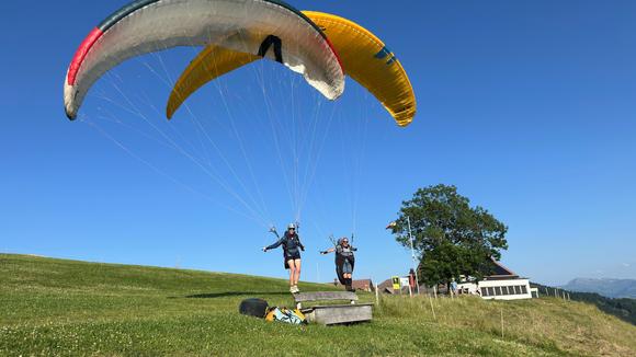 Bei dieser Gelegenheit sei gern darauf hingewiesen, dass diverse Clubmitglieder Biplace – Gleitschirmflüge ab der Scheidegg anbieten: